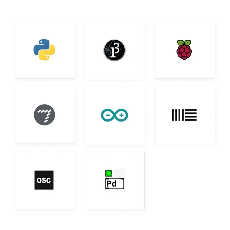 Compatible 3rd party software include Resolume, Ableton Live, MaxMSP, Mixxx, Python-OSC, Logic Pro.