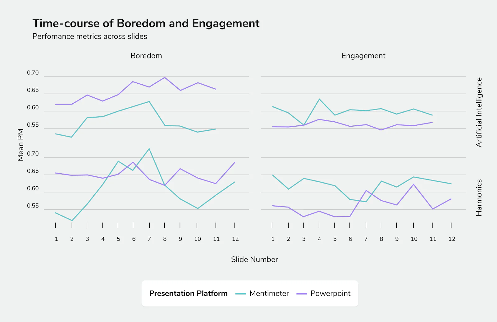 Above: An A/B test conducted with Emotiv technology to directly compare the user experiences between two presentation platforms.