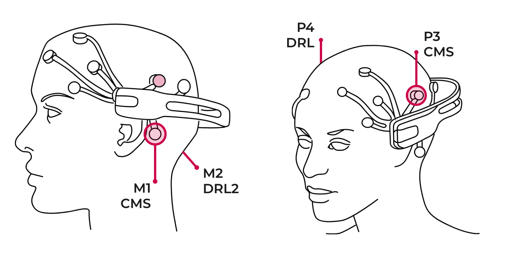 Remember electrical activity is always measured between two points. In EEG devices the electrical potential at each sensor is measured against the reference sensors (DRL + CMS).