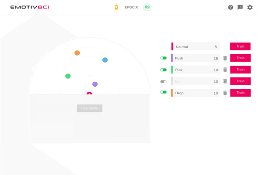 Virtual Brainwear simula diferentes estados de los auriculares EMOTIV y flujos de datos, lo que facilita el desarrollo y la prueba de tus propias aplicaciones.