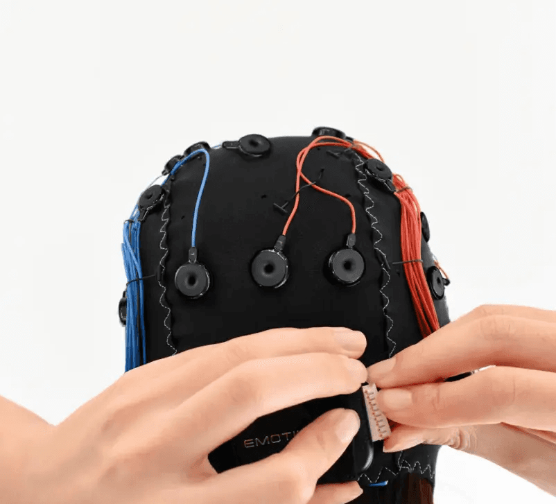 Buka aktivitas neural yang mendorong perilaku manusia dengan Sistem EEG Itik Kepala Salin Nirkabel Emotiv yang memiliki kepadatan tinggi.